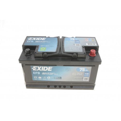 Мітки: Акумулятор 75Ah-12v Exide EFB (315х175х175), R, EN730